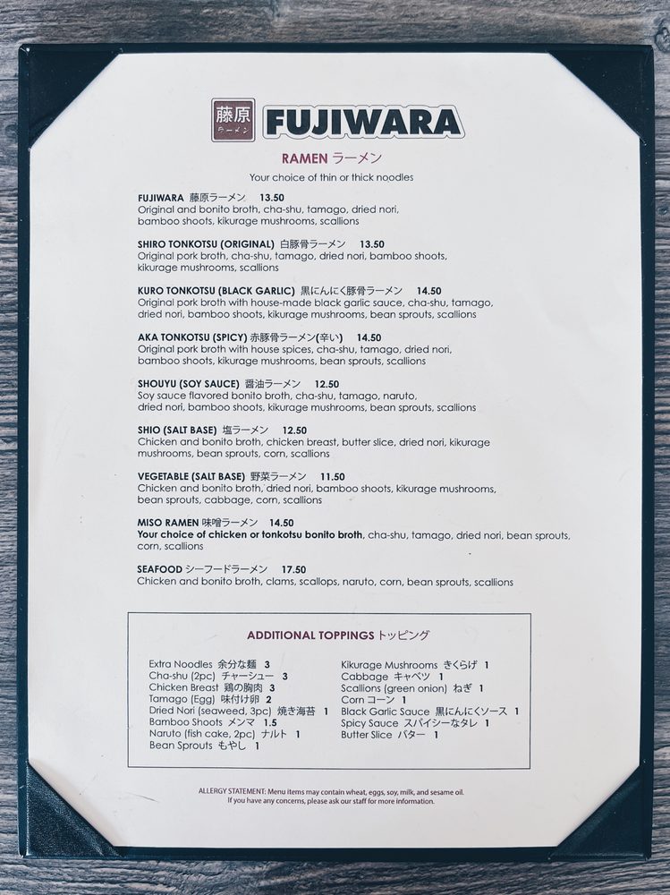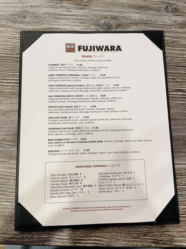Fujiwara excels in delivering a warm dining experience with a touch of modernity. Customer reviews rave about the finely balanced flavors and the inviting service. Enjoy the convenient options of takeout, delivery, and a comfortable outdoor seating area, ensuring every visit is memorable. With specials like happy hour and a military discount, Fujiwara stands out as a must-visit destination for ramen lovers in the area.